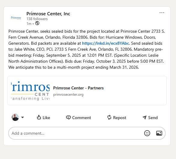 Hurricane Windows / Doors/ Generators - Expected Date: September 2025